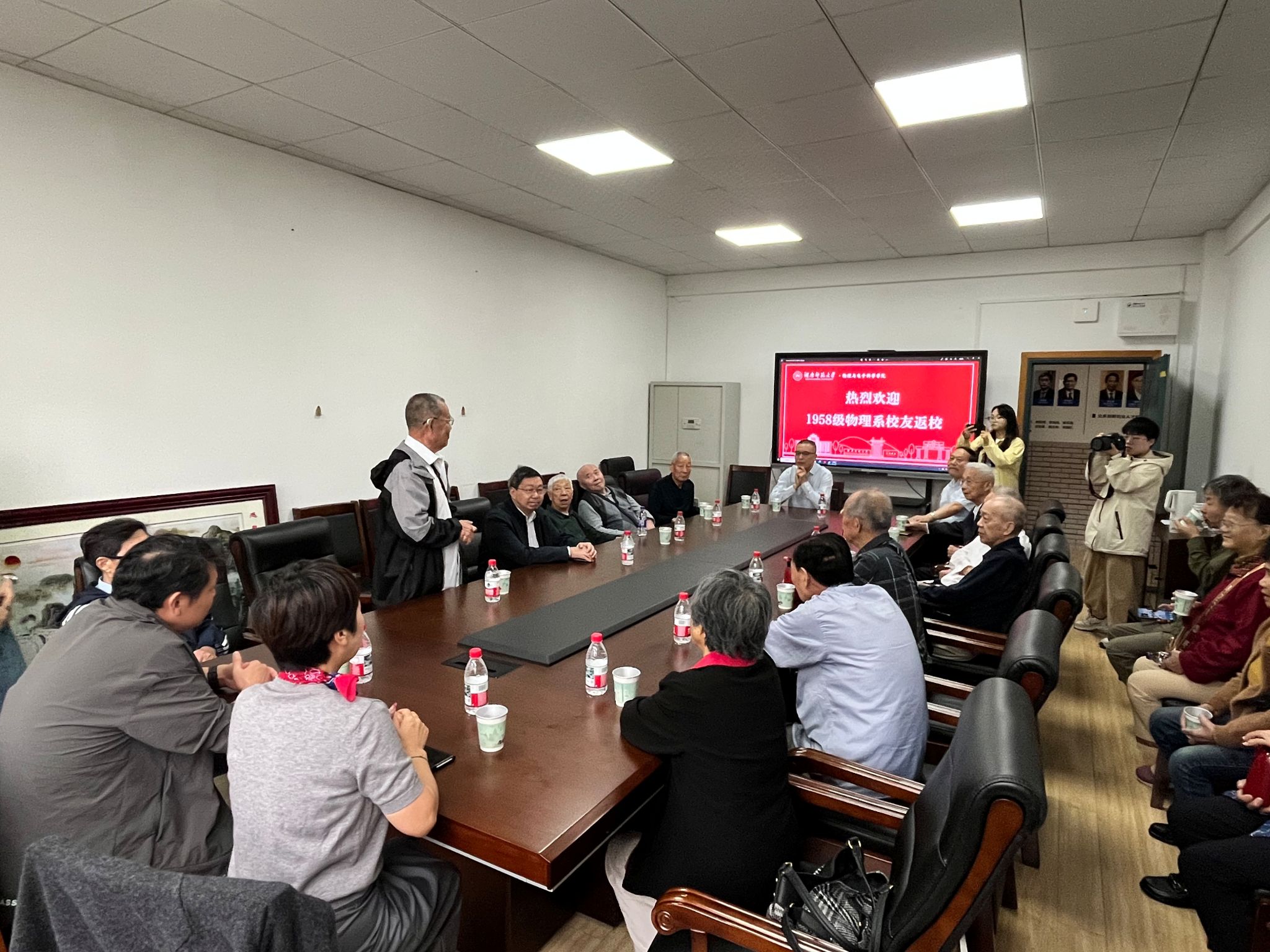 10月13日,物理系1958级校友从各地重返母校,共赴一场深情之约。湖南师范大学原副校长匡乐满、校友总会副秘书长贺慧星、湖南师范大学教师教育学院原院长宋善炎、物理与电子科学学院院长刘红荣、院党委书记罗嵘、副院长李友明等出席聚会,现场气氛温馨而热烈。