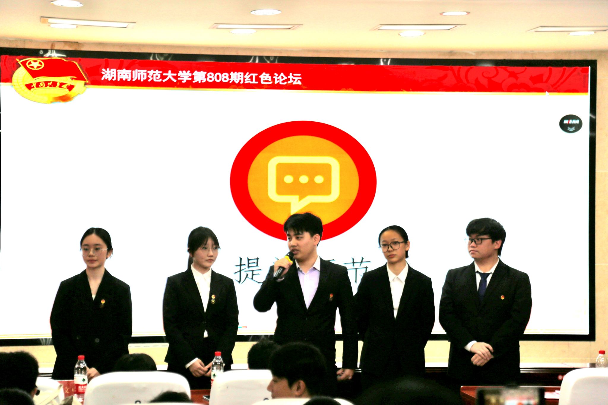 (通讯员陈雨婕许玲)10月28日中午,物理与电子科学学院团委于格物楼509报告厅组织开展第808期红色论坛。物电院团委负责人蒋文卓老师,湖南师范大学哲学系暨道德文化研究院胡景谱老师作为特邀嘉宾出席此次活动。2023级李志柔,沈蓉,李长春,殷梓萱,2024级邓湘源五位同学担任此次论坛主讲人。