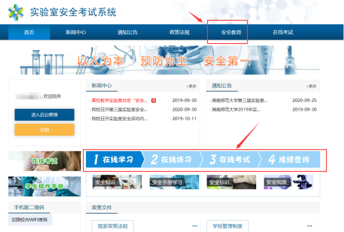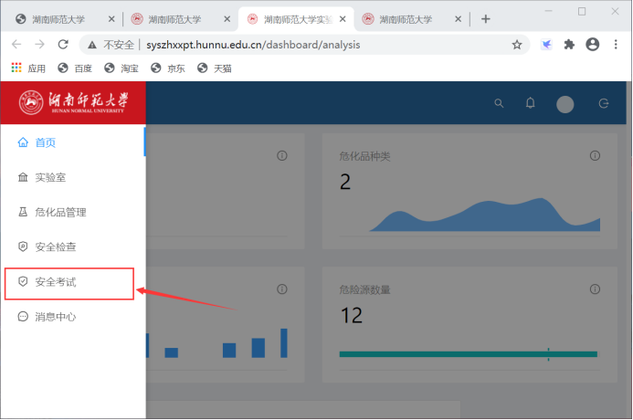 2、进入实验室安全学习与考试平台
