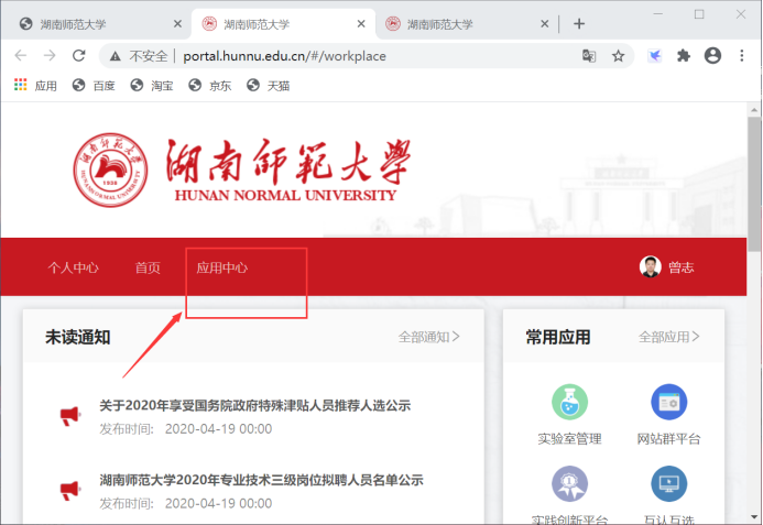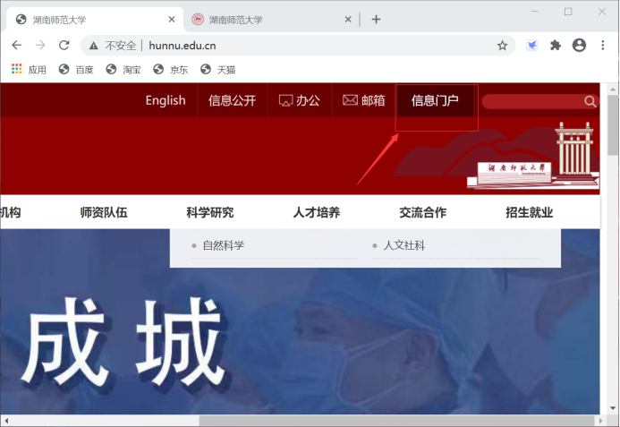 1、使用http://www.hunnu.edu.cn网址登录“信息门户”