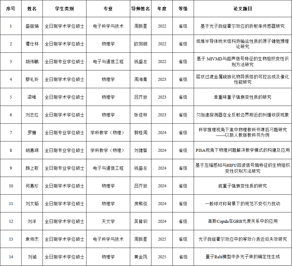 2022-2025年获湖南省优秀硕士学位论文名单
