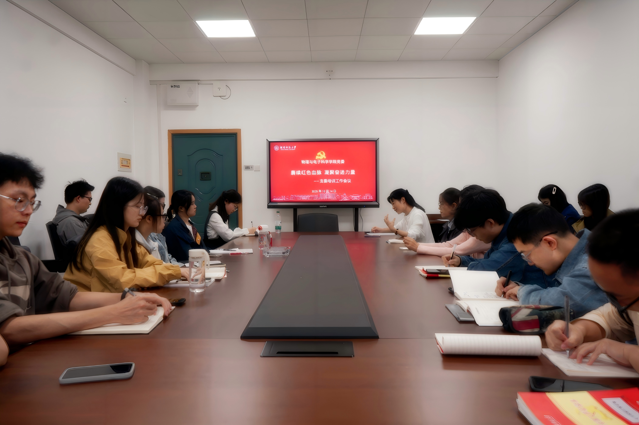 (通讯员 上官子琪)10月15日,物理与电子科学学院以“赓续红色血脉,凝聚奋进力量”为主题,组织开展学生党支部新支委培训教育活动。学院8个学生党支部的新支委全员参加。培训会上,学院专职组织员吴浪波围绕“如何坚守初心使命、如何认清当今国际国内环境、如何提升干部素养”三个维度展开深入讲解。他结合支部工作实际,既强调了当前重点任务的推进要求,也对支部示范创建工作提出了“强基础、创特色、树标杆”的殷切期望,为新支委明确了工作方向与方法路径。