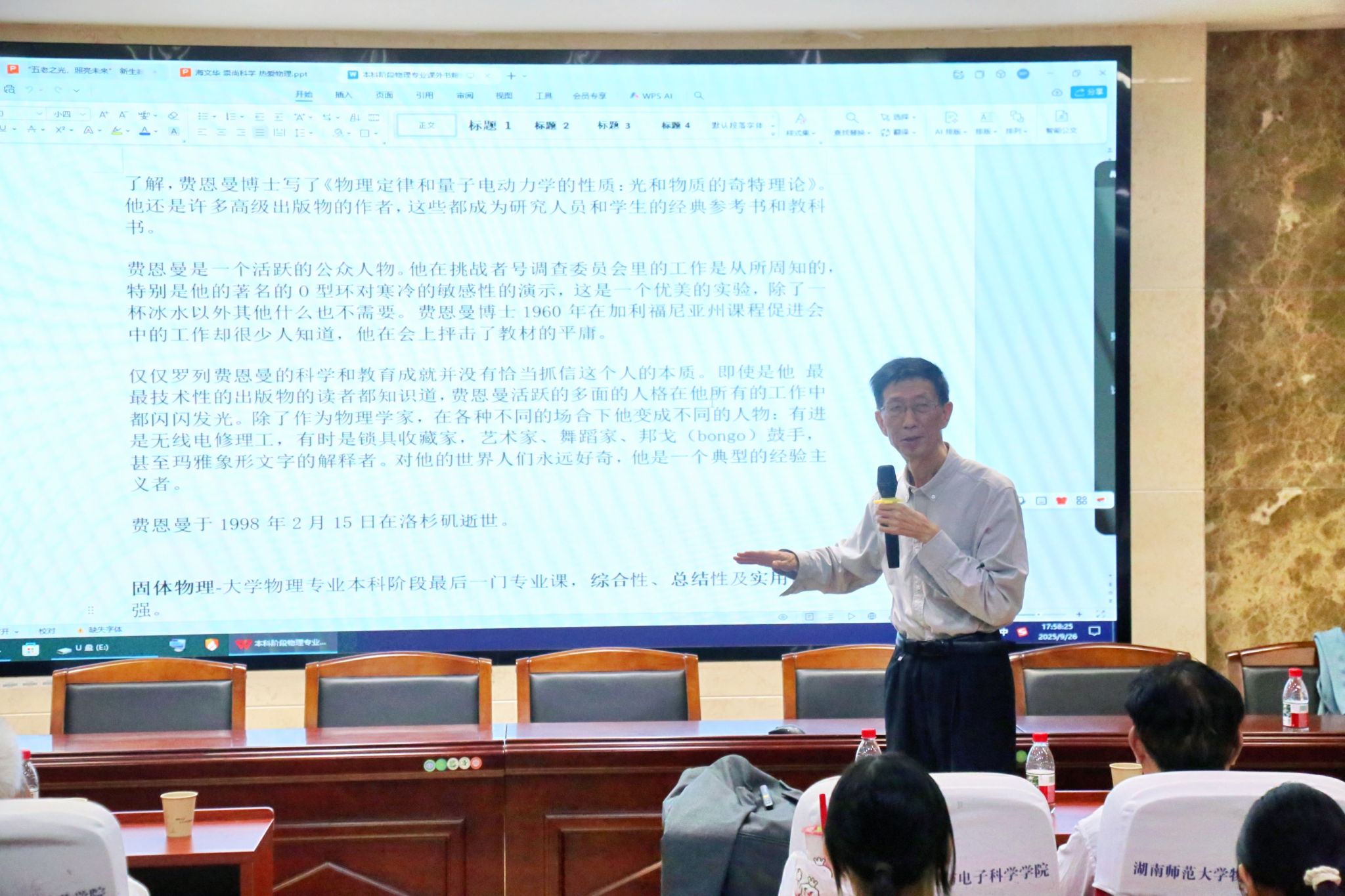 海文华从物理学与多学科的关联切入,强调其重要性。他介绍科学素质及统观全局等物理科学方法,倡导“德谋并举”学物理,从提升探索真理学习能力、增强检验真理实践能力、顺应真理报国三方面引导学生追求真理,还分享物理与人生关联,鼓励新生热爱物理,为提高全民科学素质出力。