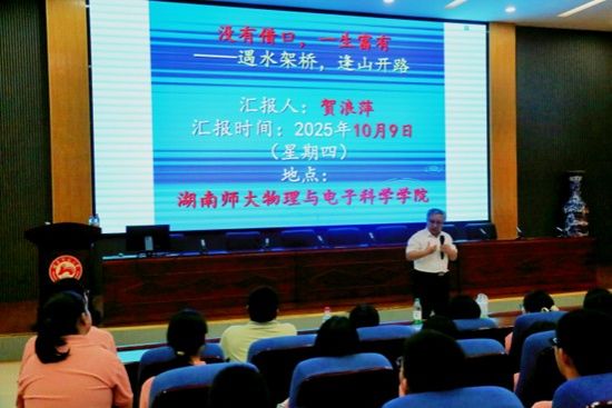 (通讯员 祝莎莎 陈怡廷)10月9日下午,物电院校友回湘讲座于体育学院报告厅举办。学院党委书记罗嵘、党委副书记郑智等领导老师出席讲座,物电院1977级校友贺浪萍教授担任主讲人。