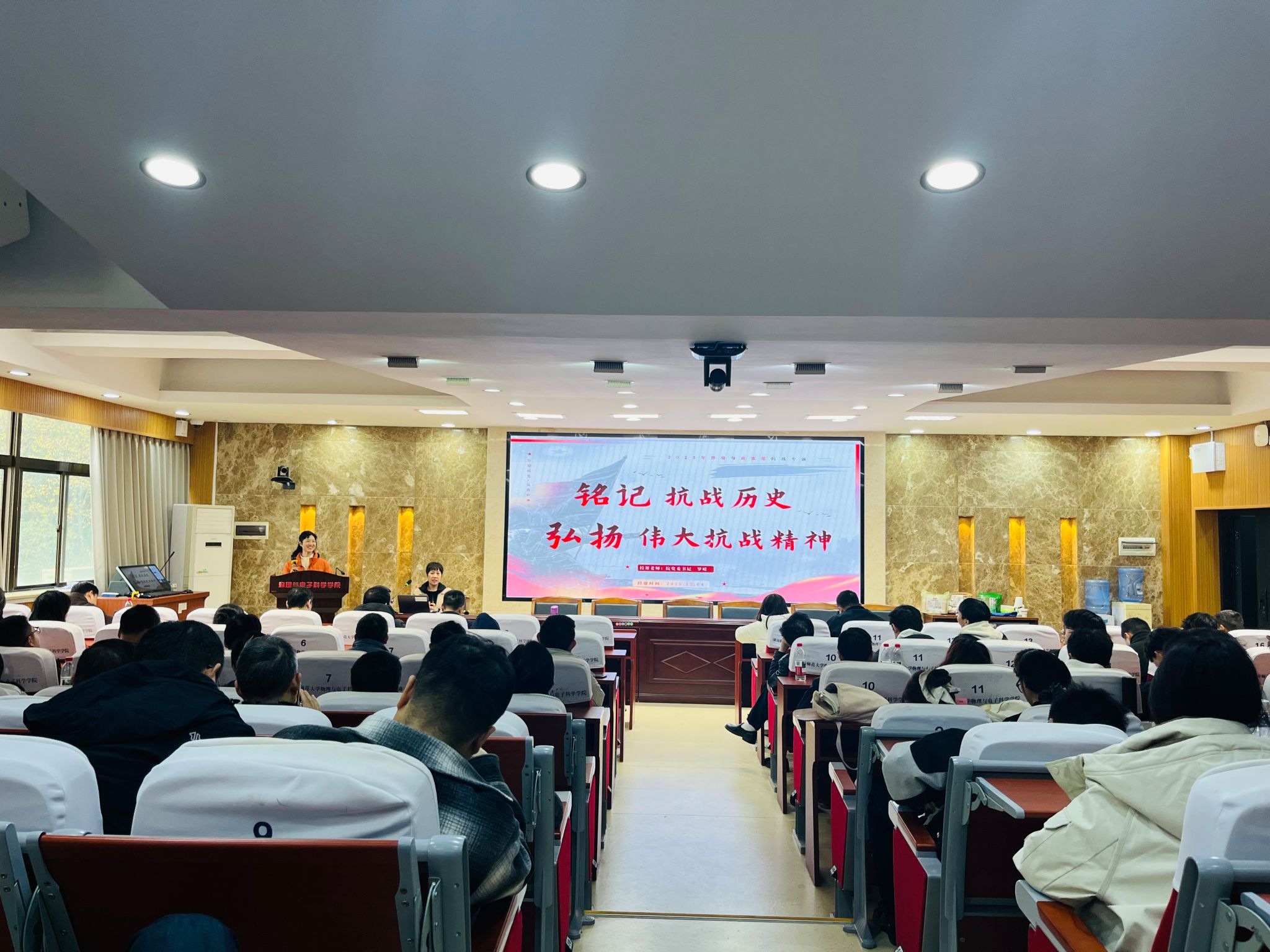 12月4日下午,物理与电子科学学院在格物楼509报告厅开展2025年《形势与政策》课暨教职工政治理论学习,主题为《铭记抗战历史,继承弘扬伟大抗战精神》。院党委书记罗嵘担任主讲。会议由专职组织员吴浪波主持,2025级新生及全体教职工现场聆听。