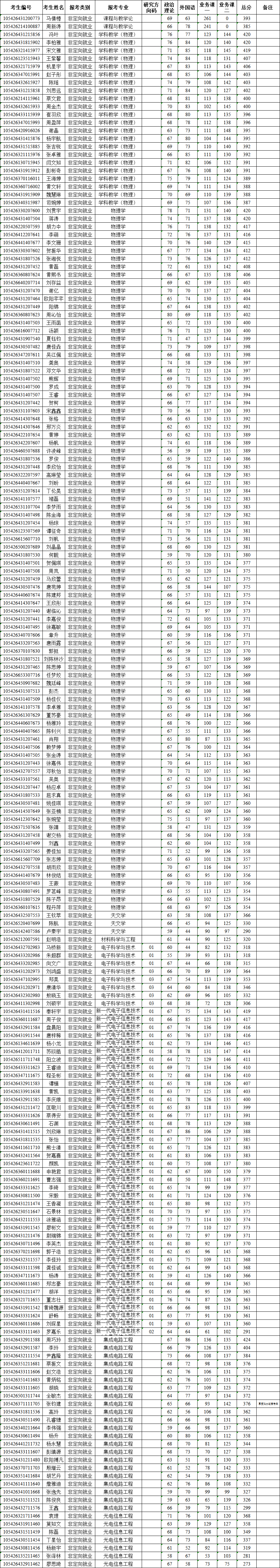 2026年度物理与电子科学学院硕士研究生复试名单公示(统考一志愿)
